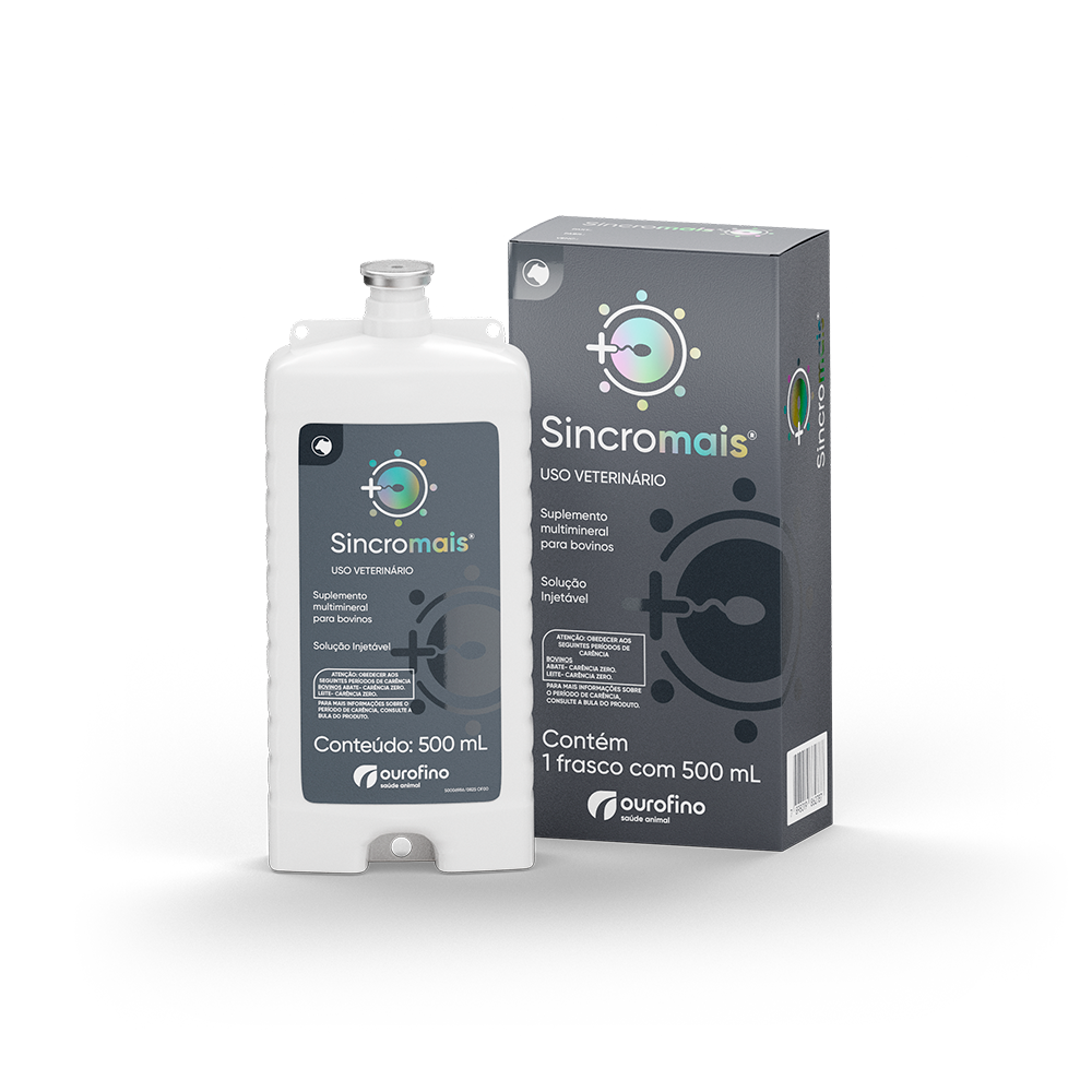 Sincromais® é uma solução injetável indicada para bovinos, composta por minerais incluindo fósforo, magnésio, cobre, selênio, cobalto e potássio.