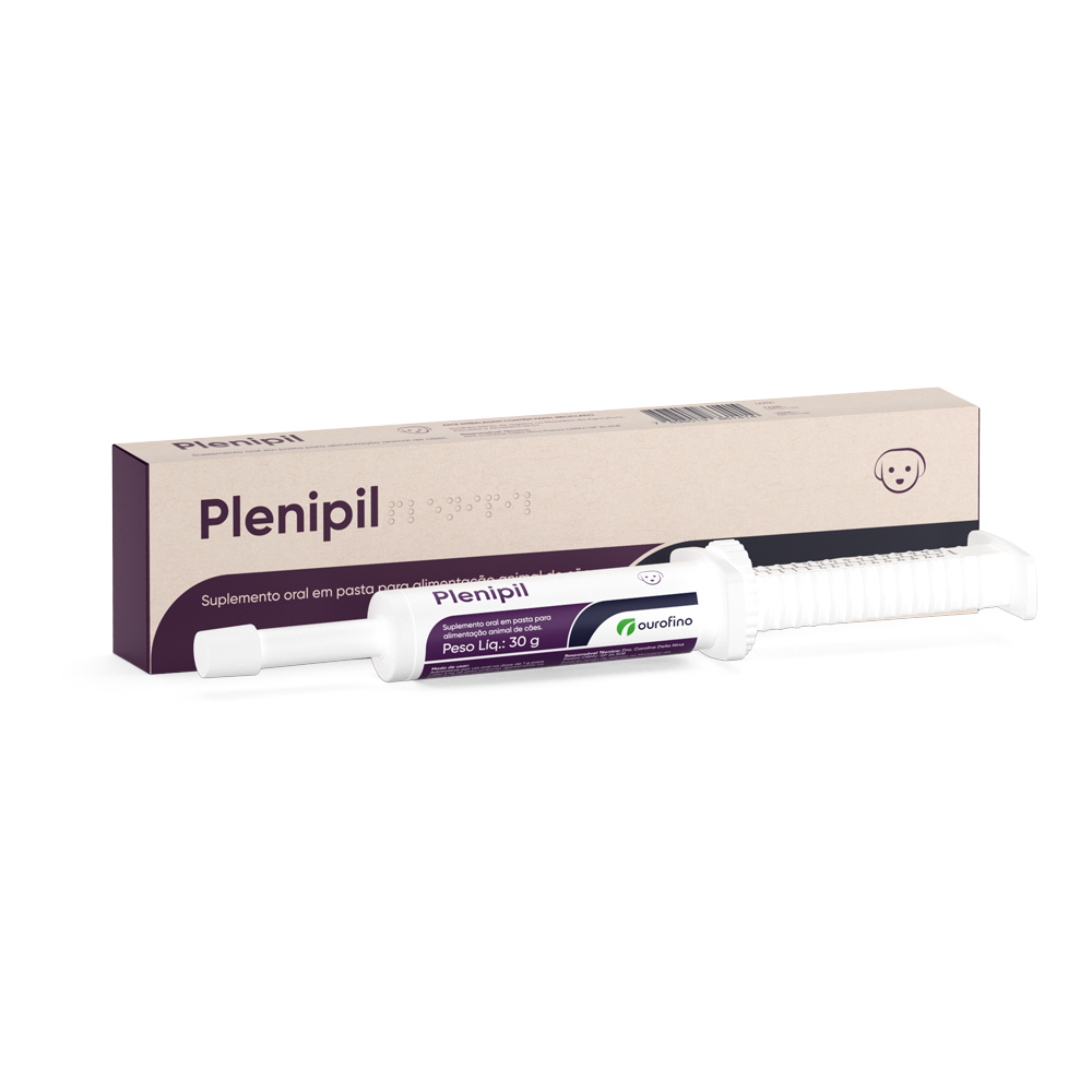 Plenipil Snacks é suplemento mastigável com Ômega 3, Vitamina A, Biotina e Selênio para fortalecer pele e pelos de cães. Ideal para todas as idades.