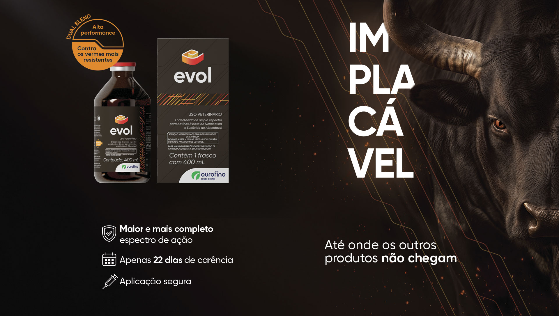 Evol é o único endectocida com eficácia superior contra cepas resistentes aos vermífugos e endectocidas comerciais.